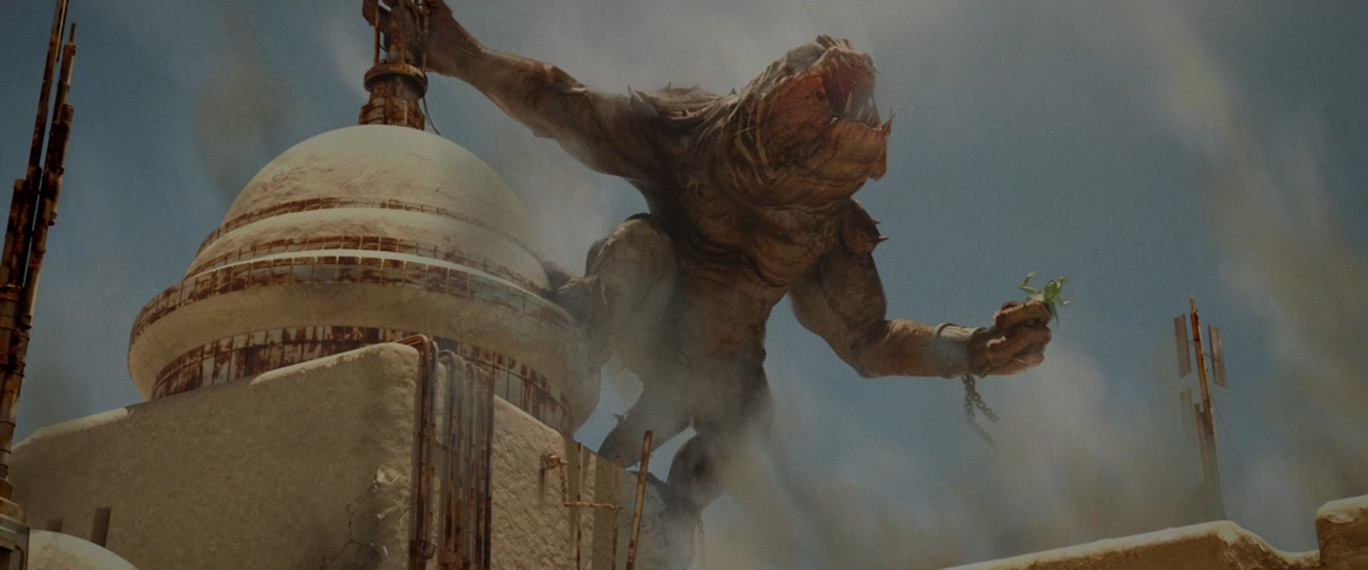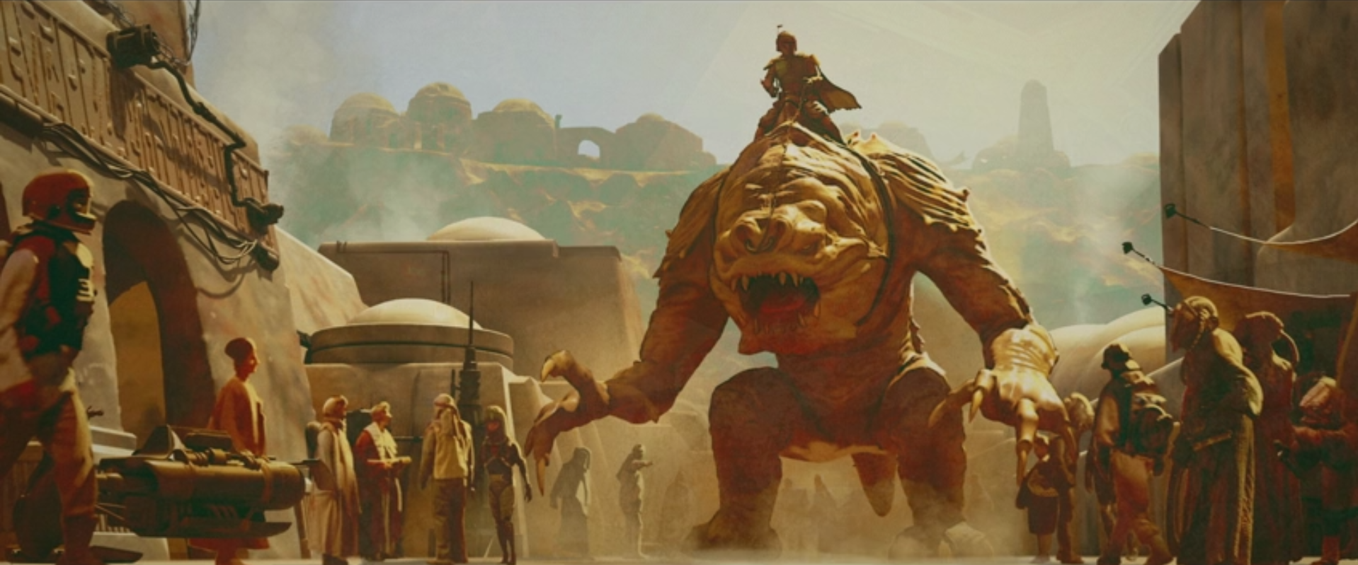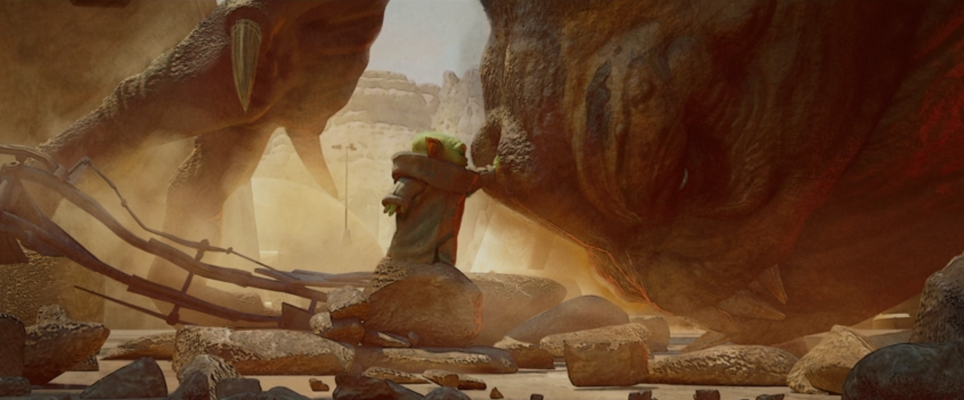 Nel frattempo il rancor, senza Boba a domarlo, terrorizza la città. Solo l’intervento di Grogu servirà a placarlo, grazie alla sua capacità – legata alla Forza – di farlo addormentare.