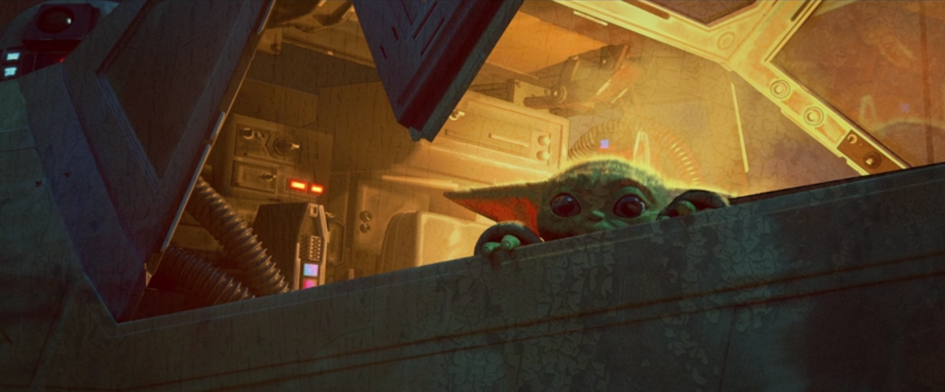 Nel frattempo Grogu, a bordo dell’iconico Ala-X di Luke Skywalker – momentaneamente guidato da R2-D2 – atterra nell’hangar di Peli Motto. Sotto la tunica il piccolo alieno verde indossa la cotta di beskar, dono di Din: ha apparentemente compiuto la sua scelta, rifiutando la via dei jedi e tornando dal mandaloriano.