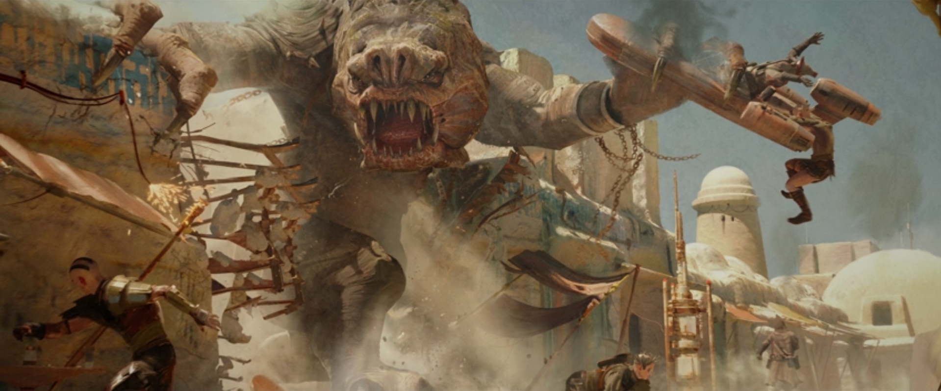 Stessa sorte tocca al secondo droide che, una volta fatto a pezzi dalla furia del rancor, costringe i Pyke alla ritirata.