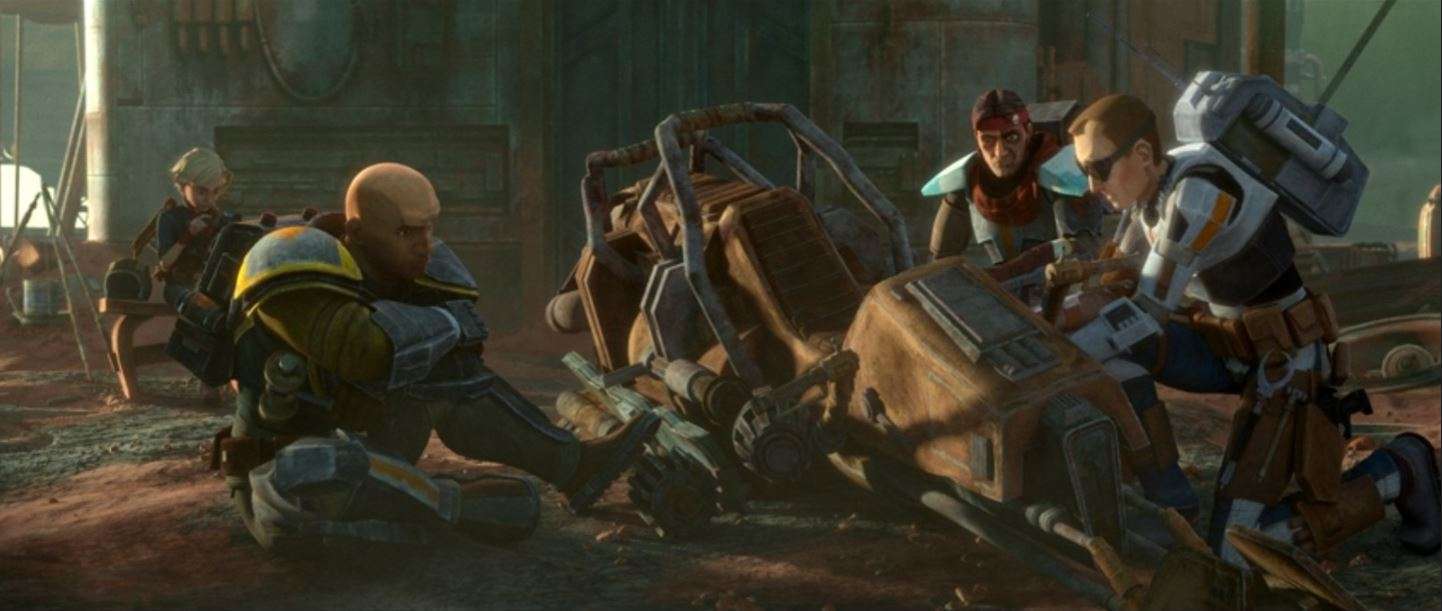 I problemi però non sono finiti, Omega e Benni vengono catturati da Mokko e i suoi, mentre la Bad Batch viene anch’essa scoperta da degli operai. Dopo un tentativo di fuga i diretti interessati si ritrovano su un ponte della miniera, con la Batch che prova invano a salvare Omega dalle grinfie di Mokko. Quando tutto sembra perduto ecco che accade l’inaspettato.
