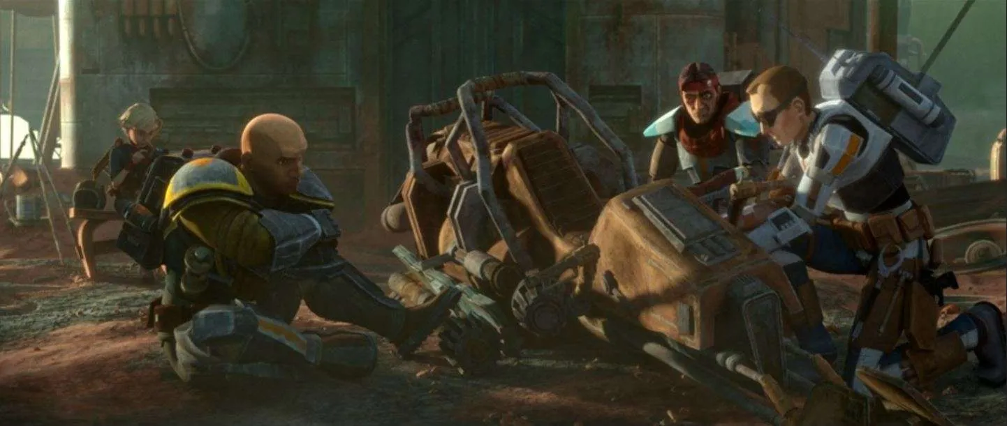 Fatto il punto della situazione e studiata la mappa del posto, la Bad Batch grazie a Tech, scopre che la base è protetta da scudi di energia, questo li spingerà a un piano folle ma funzionale: passare attraverso una delle ciminiere di scarico contando i tempi tra uno sfiato di vapore e l’altro. Il piano è rischioso, se si sbaglia si rischia la morte. Scalata la ciminiera, con un po’ di difficoltà la squadra riesce a calarsi nella miniera e a raggiungere la Marauder.
