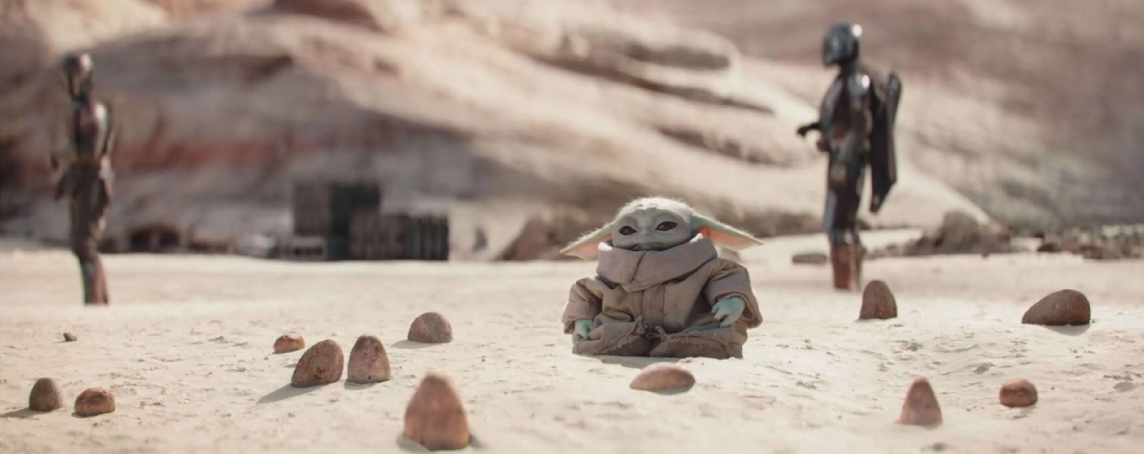 Grogu, Din Djarin e Bo-Katan sono ormai membri permanenti della Tribù dei Figli della Ronda. L’episodio infatti si apre sul nascondiglio segreto dei mandaloriani, dove decine di guerrieri affinano le loro tecniche di combattimento. Il piccolo Grogu, però, non sembra aver dimenticato le vie della Forza: lo troviamo a meditare lontano dagli altri e, per un istante, sembrerebbe quasi in procinto di far muovere le pietre che lo circondano. Pietre che poi si rivelano essere solo dei curiosi crostacei, che scappano via quando Din viene a recuperare il suo piccolo amico verde.