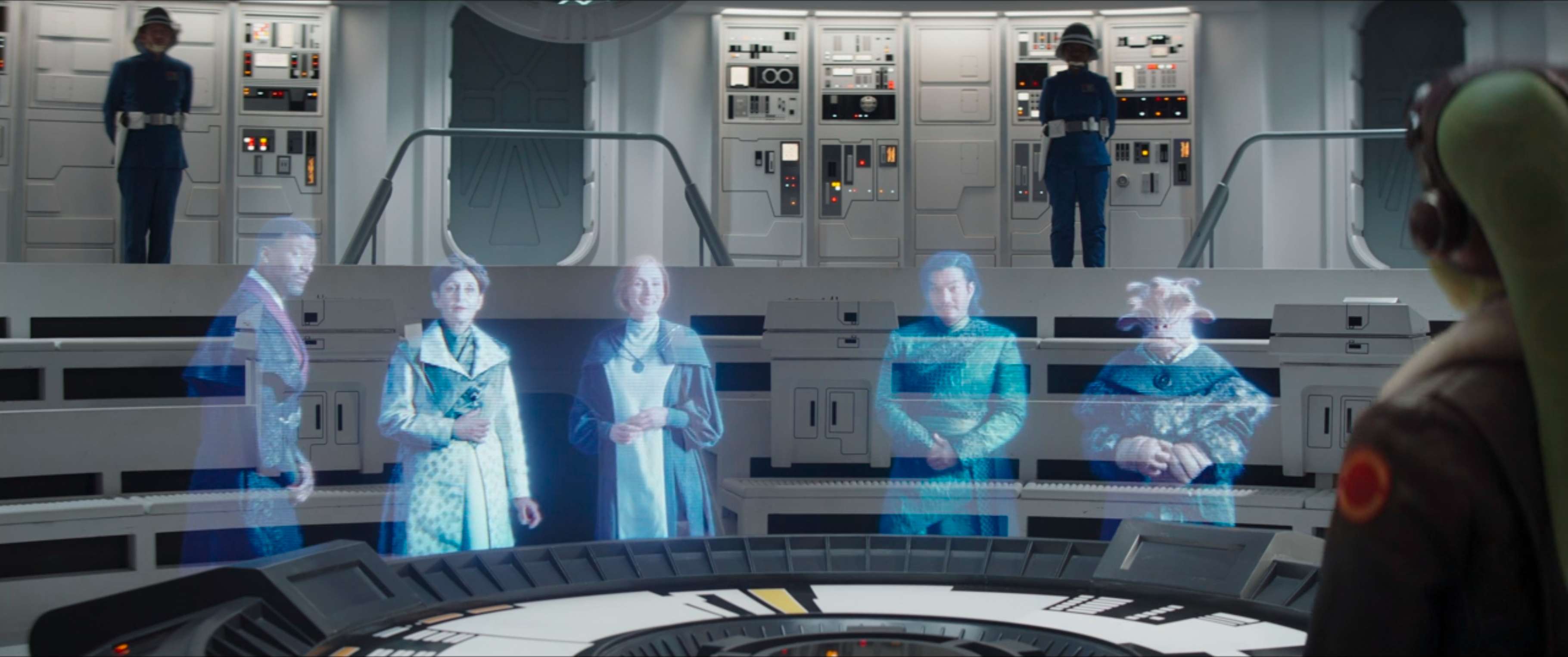Torniamo sulla Home One, nave ammiraglia di Gial Ackbar, in testa durante la Guerra Civile Galattica e ancora oggi fulcro della flotta della Repubblica. Proprio qui il Generale Hera Syndulla è chiamata a riferire delle sue indagini alla commissione della Repubblica, rappresentata da Mon Mothma – prima Cancelliere della Nuova Repubblica – e quattro senatori. Questi sono rispettivamente il Senatore Rodrigo, Mawood, Xiono e un senatore di razza Gran di cui non conosciamo attualmente il nome.