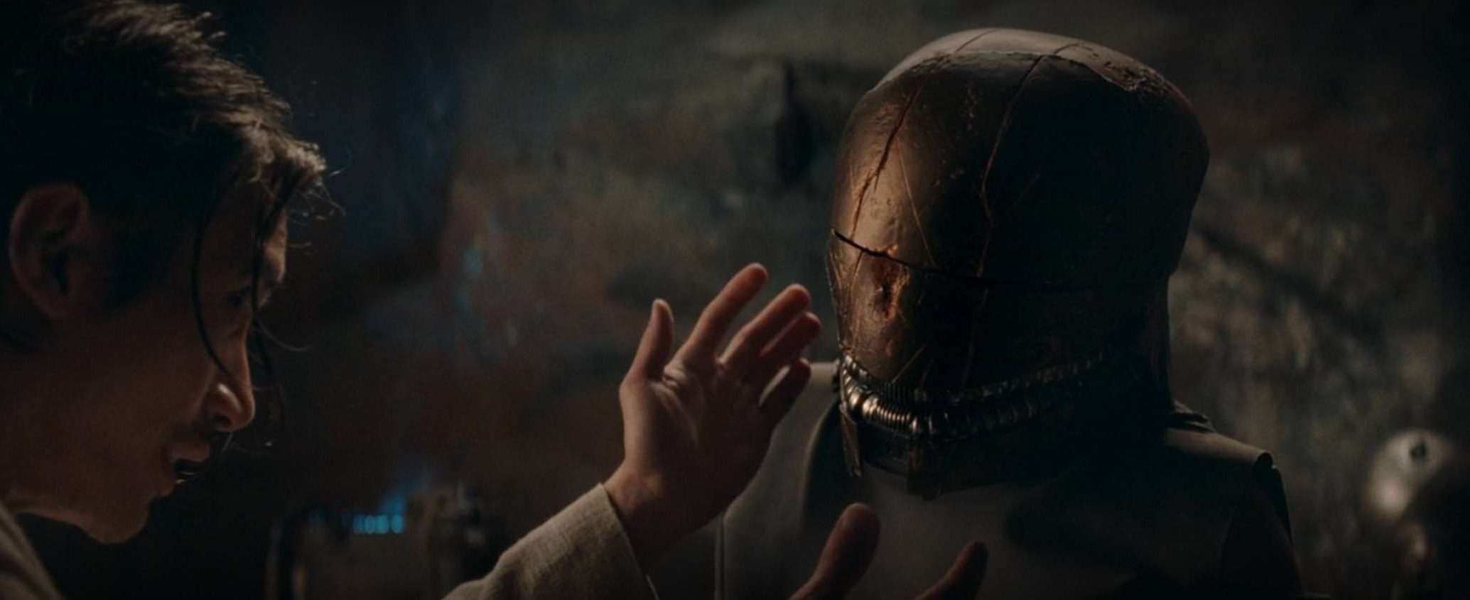 Il finale di stagione di The Acolyte inizia esattamente dove si è concluso il sesto episodio: ci troviamo sul pianeta sconosciuto (o forse no?) dove lo Straniero, alias Qimir, si è accampato. Osha ha ancora indosso l’elmo di cortosis, quando viene folgorata da una visione. L’elmo, in qualche modo, sembra possederla tanto da rendere arduo per Qimir sfilarglielo di dosso.