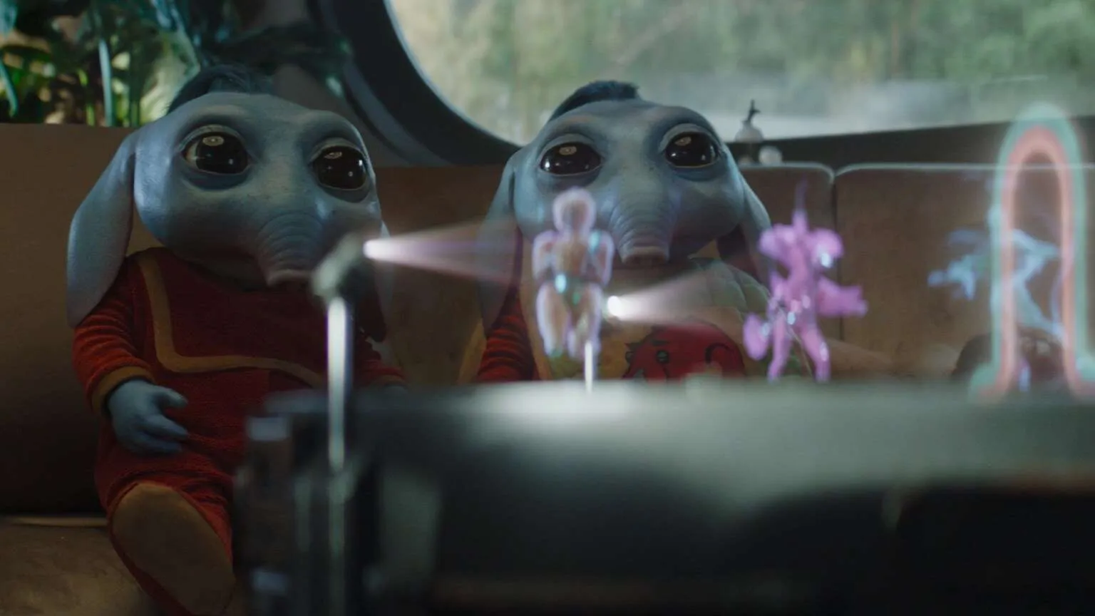 Quando Wim (interpretato da Ravi Cabot-Conyers) trova i fratelli di Neel (Robert Timothy Smith) seduti attorno al tavolo olografico, i fan più attenti avranno sicuramente riconosciuto i vivaci artisti e la musica che accompagna la loro esibizione. Questa sequenza rappresenta infatti una riproduzione accurata del circo olografico originale visto nell’Holiday Special, ricreata con cura dai creatori della serie, Jon Watts e Chris Ford.